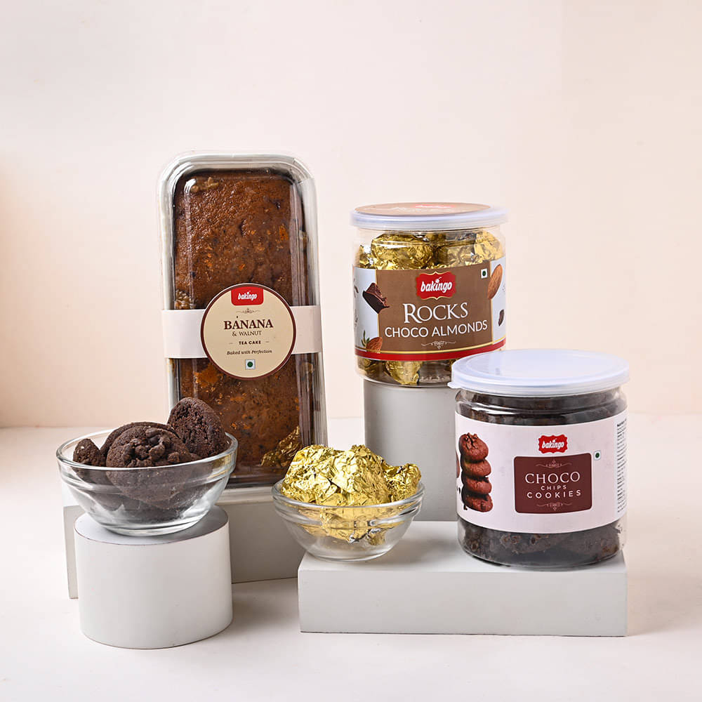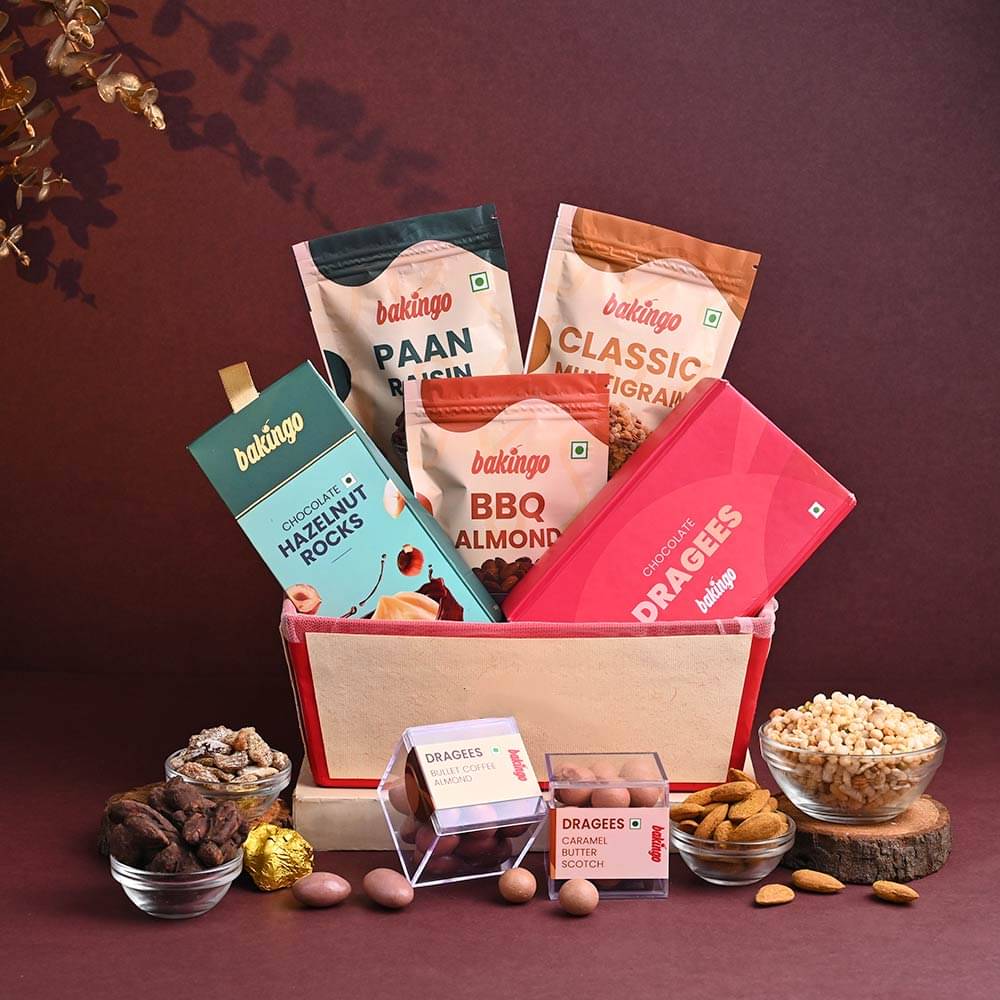 The joy of giving and receiving gifts is unique. Make your loved ones feel special with Bakingo’s exquisite bakery gift hampers. The much-loved online bakery is all set to give you a delicious sugar rush with their festive hampers online. No matter what the occasion, Bakingo has you covered. These bakery hamper is perfect for Diwali Gifts, Anniversary Gifts, Birthday Gifts, Housewarming Gifts, New Year Gifts, Christmas Gifts, Wedding Gifts, Raksha Bandhan Gifts, Mother's Day Gifts, Friendship Day Gifts, Women's Day Gifts, Corporate Gifts, Holi gifts etc. So why gift your loved one any regular hamper when you can give them a gift basket full of bakery hampers. All of the bakery products are handmade, using only the best ingredients and, of course, a little bit of love. Once, you have scrolled through our carefully curated collection of bakery gift hampers, gift baskets and gourmet food products that you can be confident to buy gifts for yourself too !!