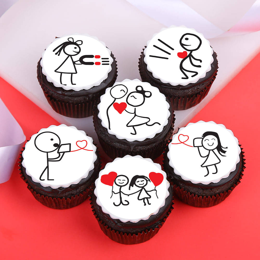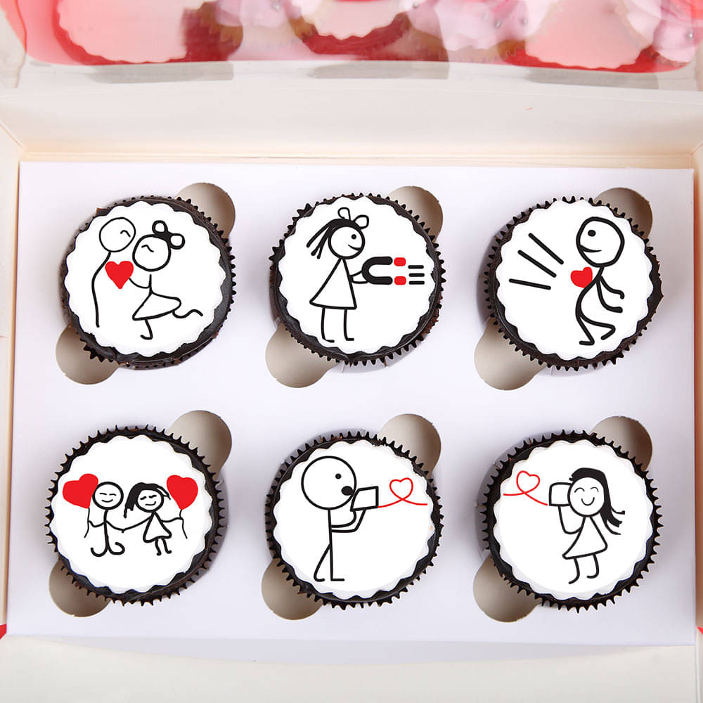 Set of Six Valentine Love Filled Chocolate Cupcakes