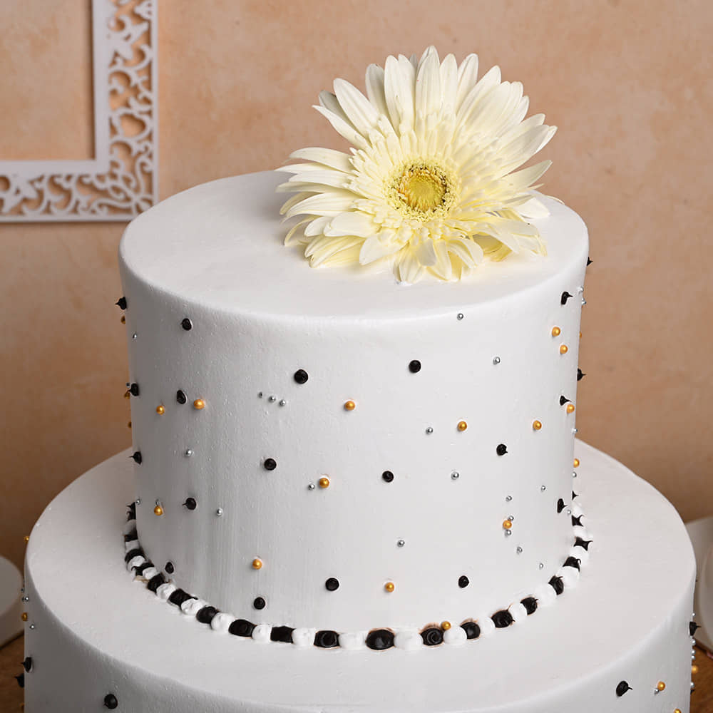 Pearly White Floral Tire Creame Cake